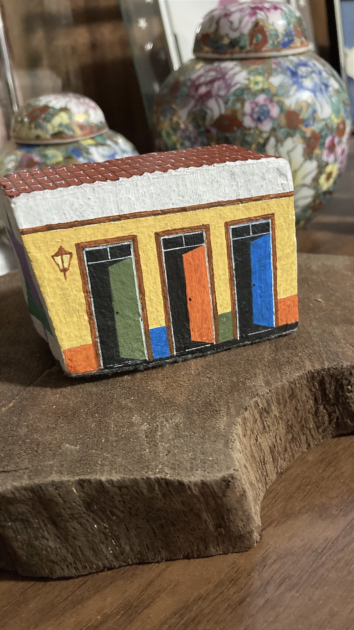 Casinha açoriana pintada à mão em pedra petit pavê. Cada peça traz cor, história e poesia, resultado de um artesanato feito com cuidado e afeto para decorar seu lar com beleza e significado.